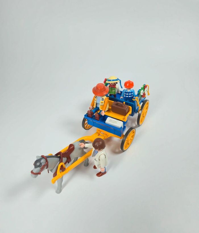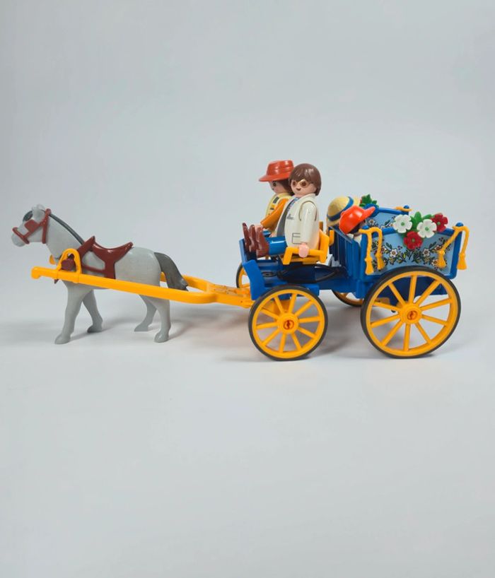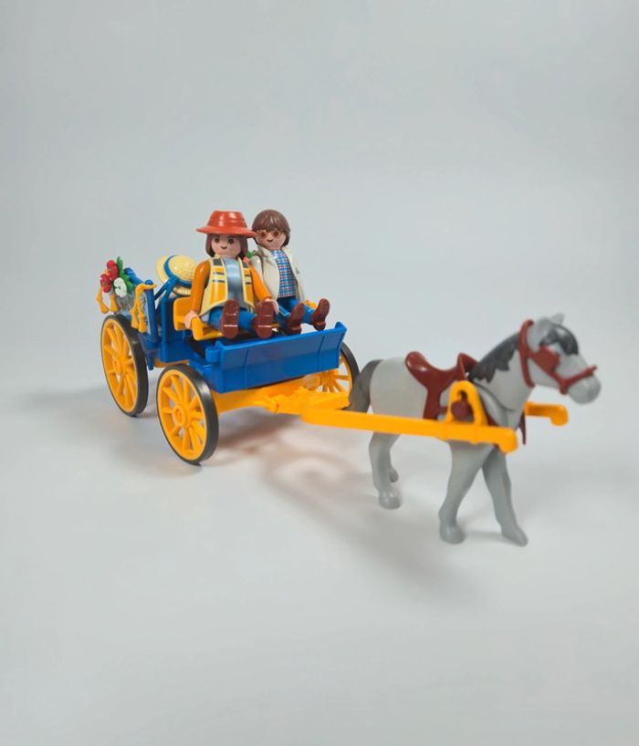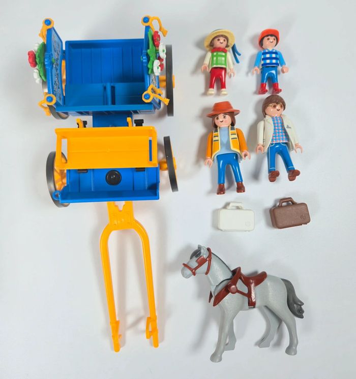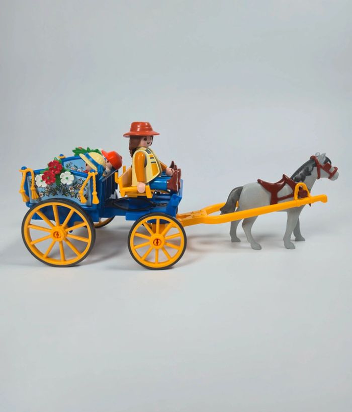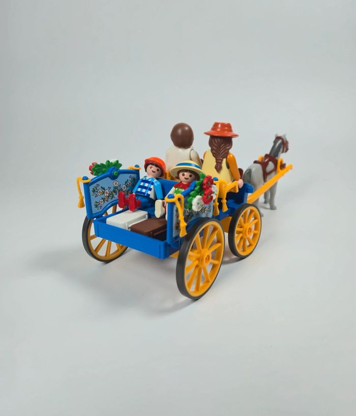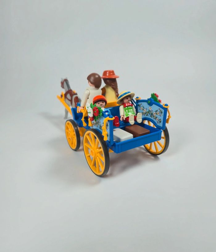 Playmobil Famille avec calèche Bleue et roue jaune - photo numéro 1