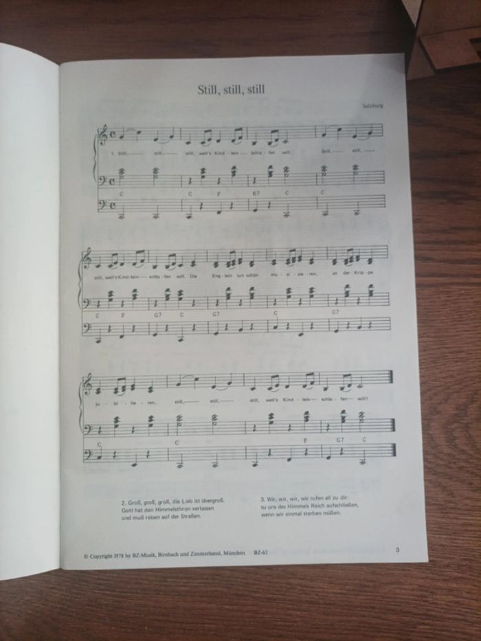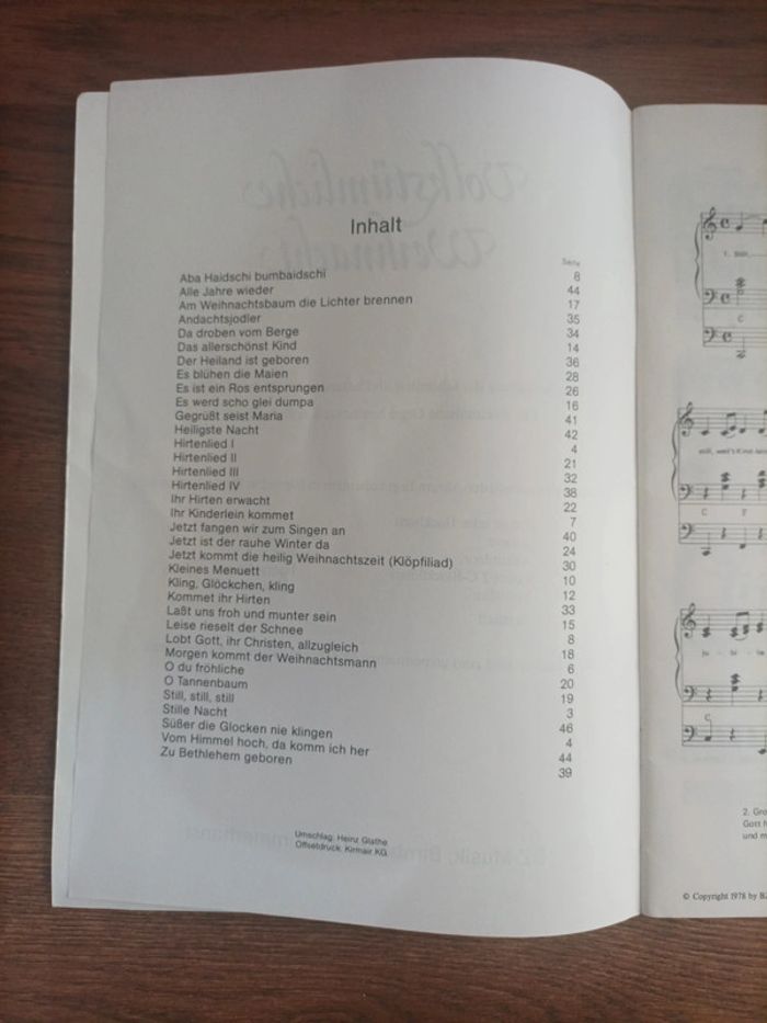 Partitions de 35 chants de Noël pour orgue électrique. Avec paroles en allemand. Table des matières sur photo. Couverture légèrement tachée, voir photos.