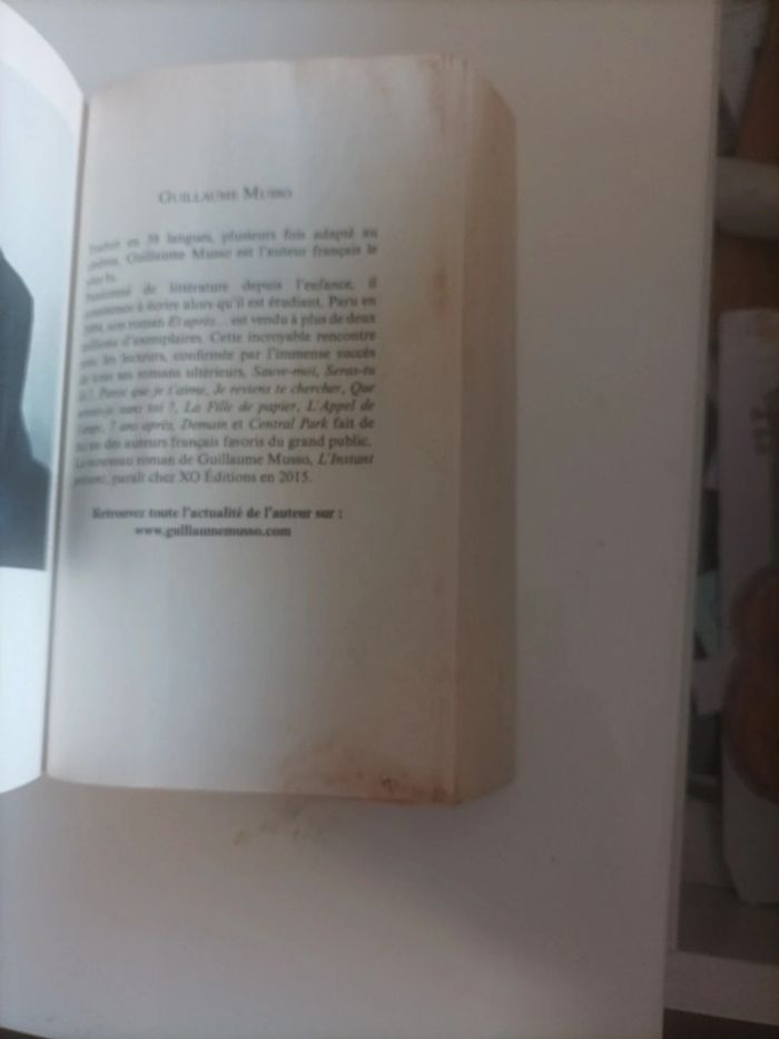 Première page un peu sale. Première de couverture ondulée. Plusieurs romans du même auteur dans mon dressing.