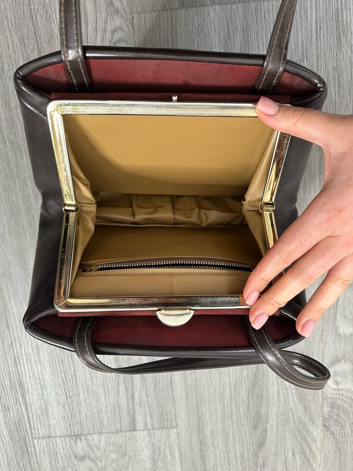 Sac à main en cuir véritable marron Vintage - photo numéro 2