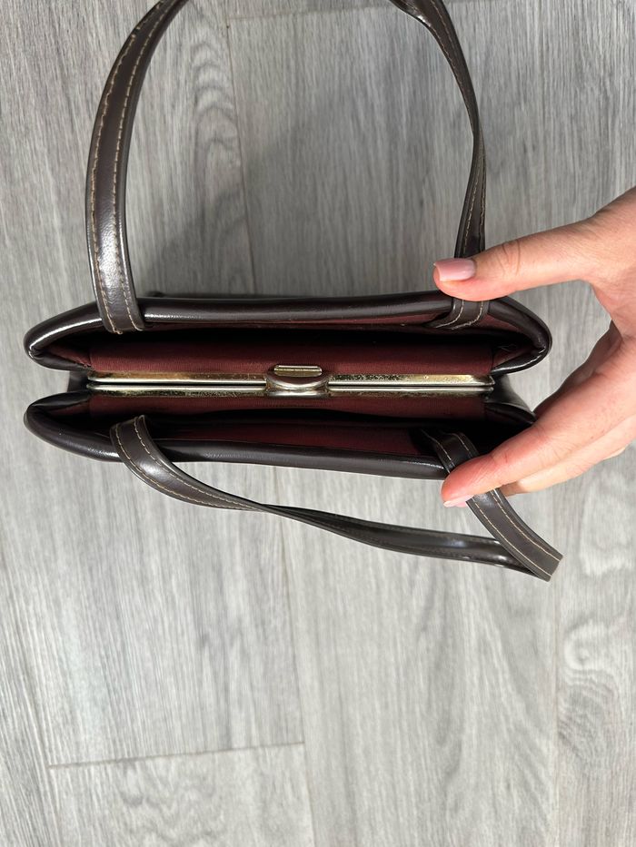 Sac à main en cuir véritable marron Vintage - photo numéro 5