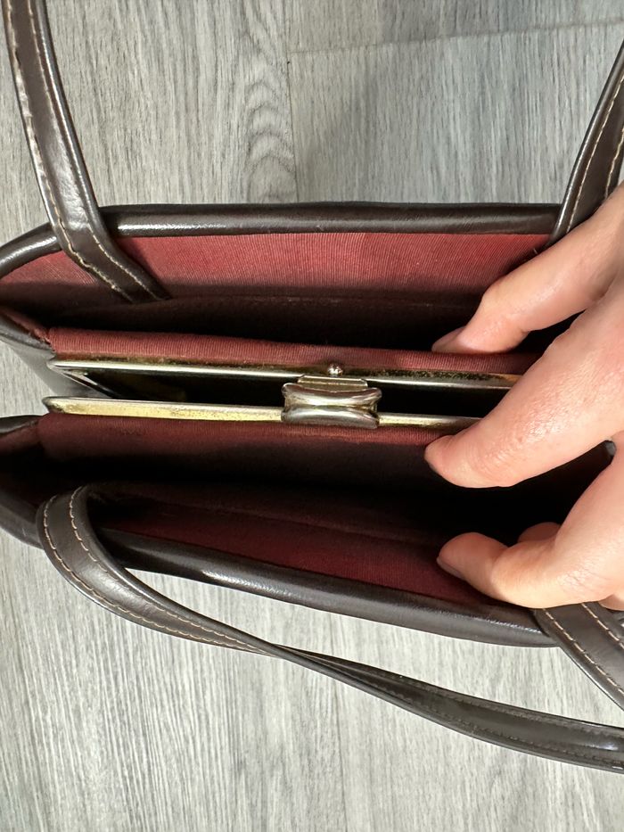 Sac à main en cuir véritable marron Vintage - photo numéro 7