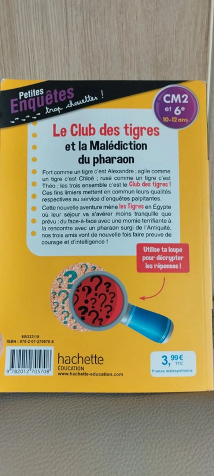 Petites enquêtes trop chouettes Le club des tigres et la malédiction du pharaon Mène ton enquête et utilise ta loupe pour décrypter les réponses. 10/12 ans. Très bon état. #linejaclivres
