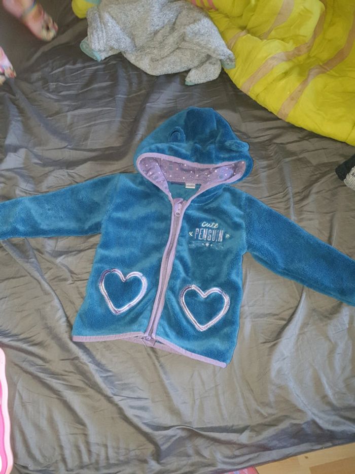 Veste polaire couleur bleu canard à capuche 2 ans #vêtementsfille2anspoline62100