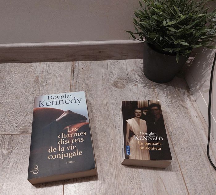 Lot de 2 livres de Douglas Kennedy : - La poursuite du bonheur, format poche. En bon état. Légèrement abimé dans le coin et tranche marquée - Les charmes discrets de la vie conjugale, format broché. En très bon état, mais pages un peu jaunies.