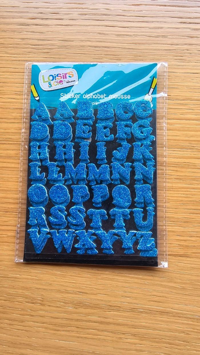 Lot 84 stickers alphabet en mousse colori bleu brillant pailleté Neuf