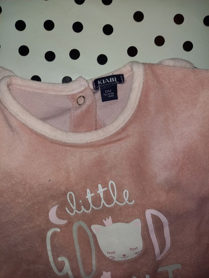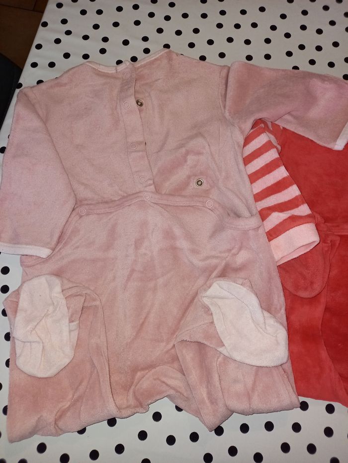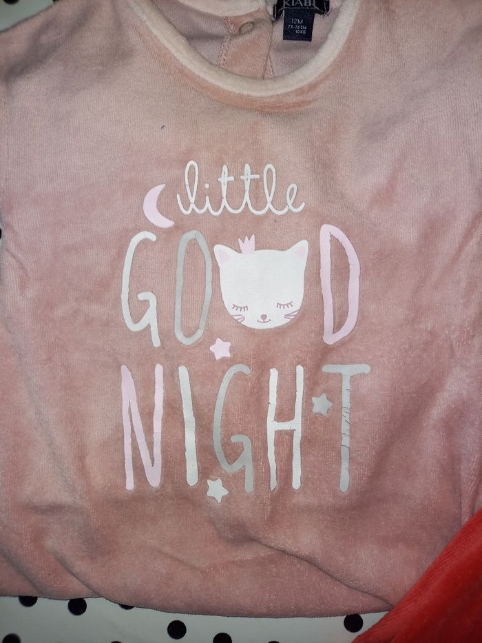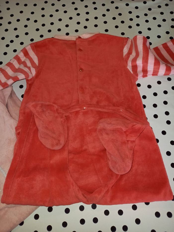 Lot de 2 pyjamas pour fille taille 12 mois Marque kiabi Très bon état juste le rouge un mini trou et les pressions la couleur est un peu partie