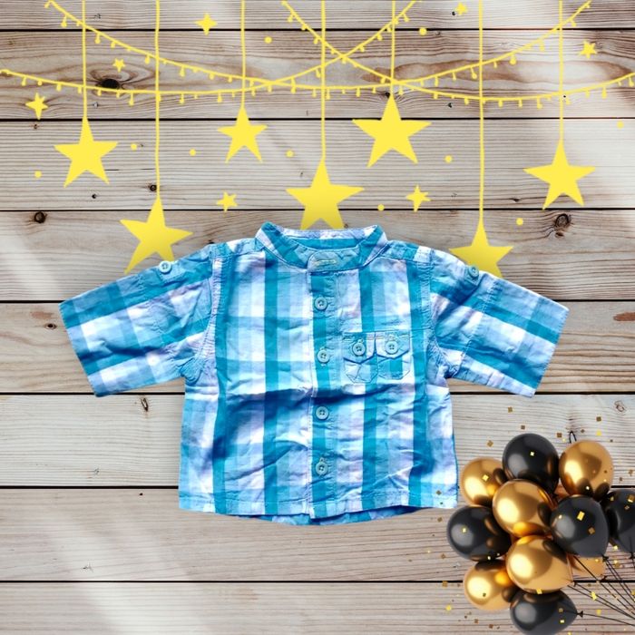 Adorable Chemise à Carreaux Bleus et Blancs pour bébé 1 mois - photo numéro 1