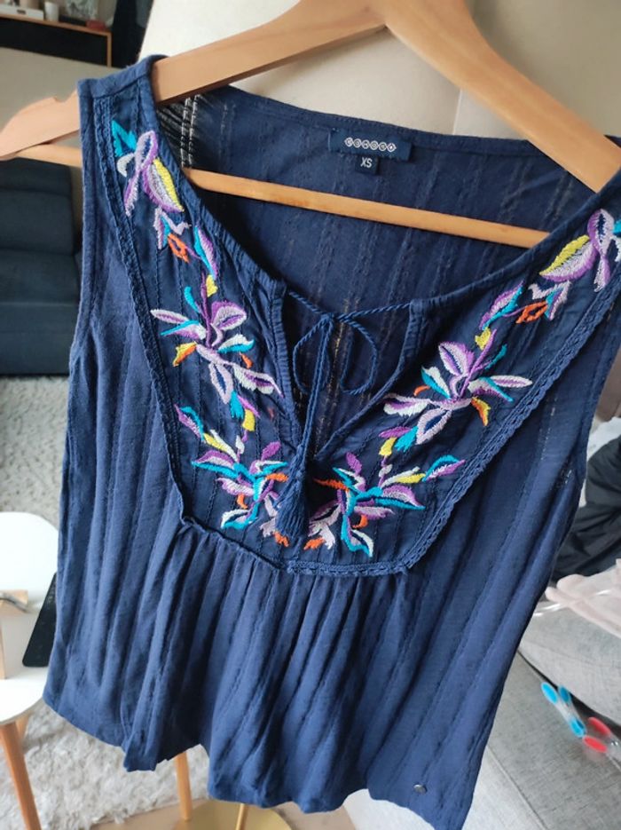 Top bleu marine/violet T.34 Bonobo assez ample #elomatfemme34