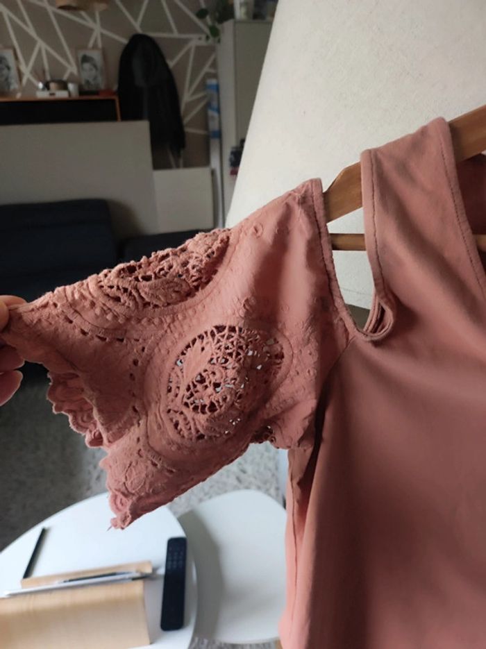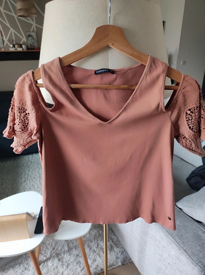 Très beau top bretelles tombante brodé. T.XS Bonobo #elomatfemme34