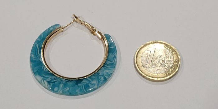 BOUCLES D'OREILLES ANNEAUX CREOLES MARBREES BLEU ! NEUF - photo numéro 3