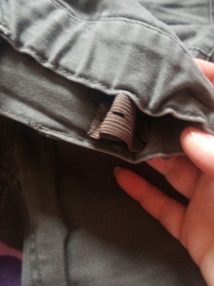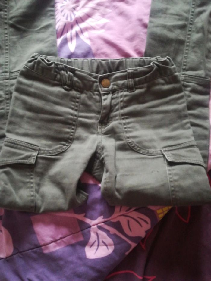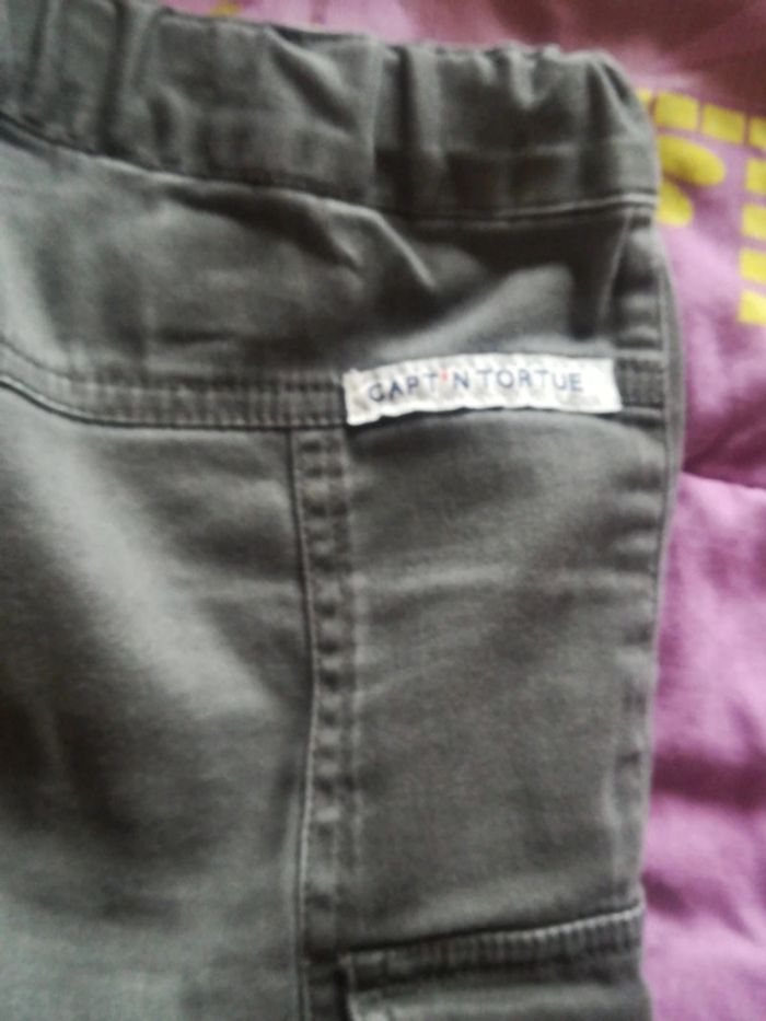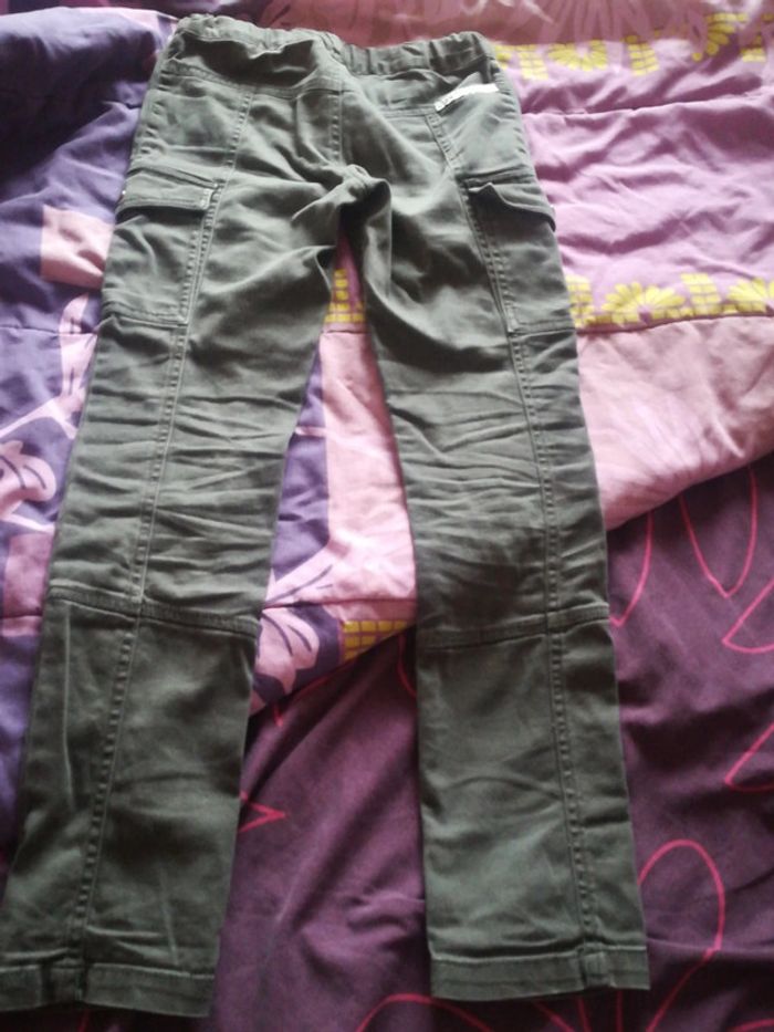 Super pratique avec toutes ses poches Joli kaki Taille ajustable Possibilité de mettre une ceinture Taille parfaitement Taille 128cm Pas de défauts mais porté donc usure normale