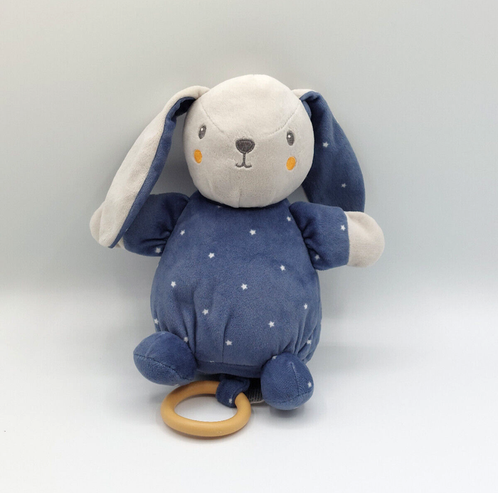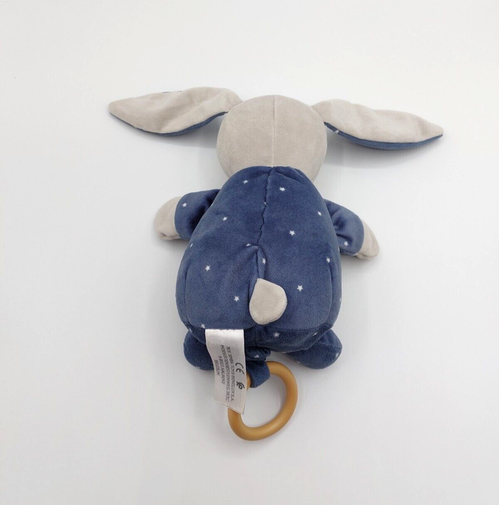 Doudou peluche musicale lapin bleu nuit gris SIMBA TOYS étoiles blanches Bon état, légères traces sur une patte et à l’arrière d’une oreille Envoi soigné et rapide Réf A11495 #minotresor #peluche #doudou #plush #knuffel #comforter #simbatoys