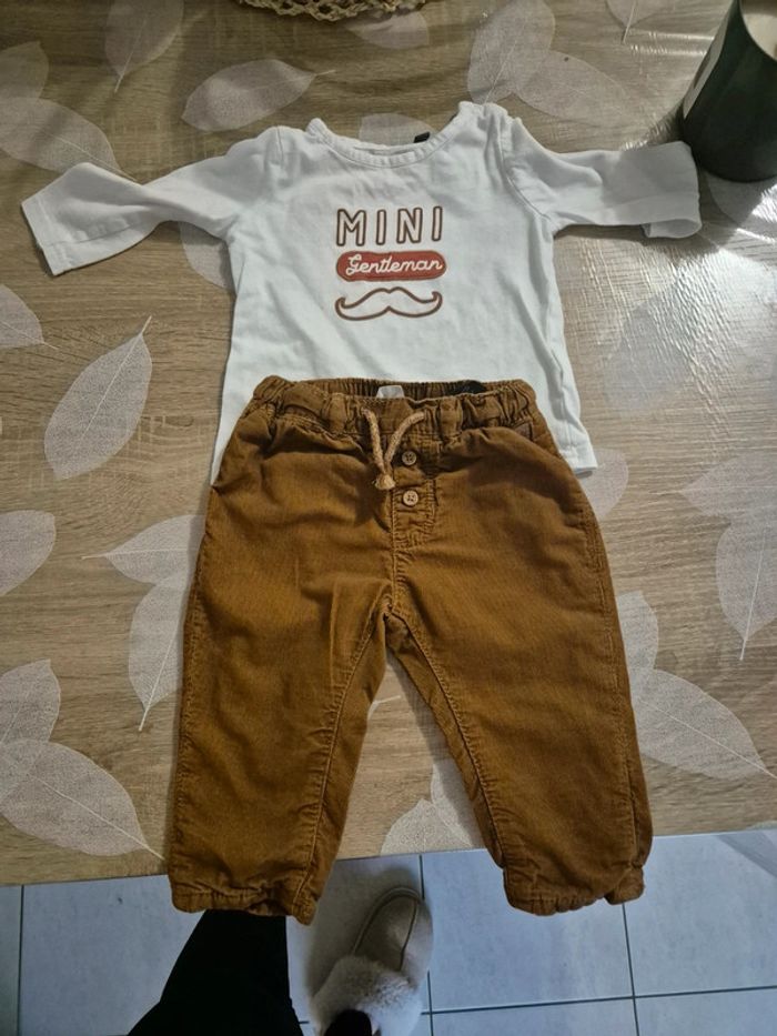 Ensemble taille 6 mois . Pantalon 4-6 mois réglable à la taille .