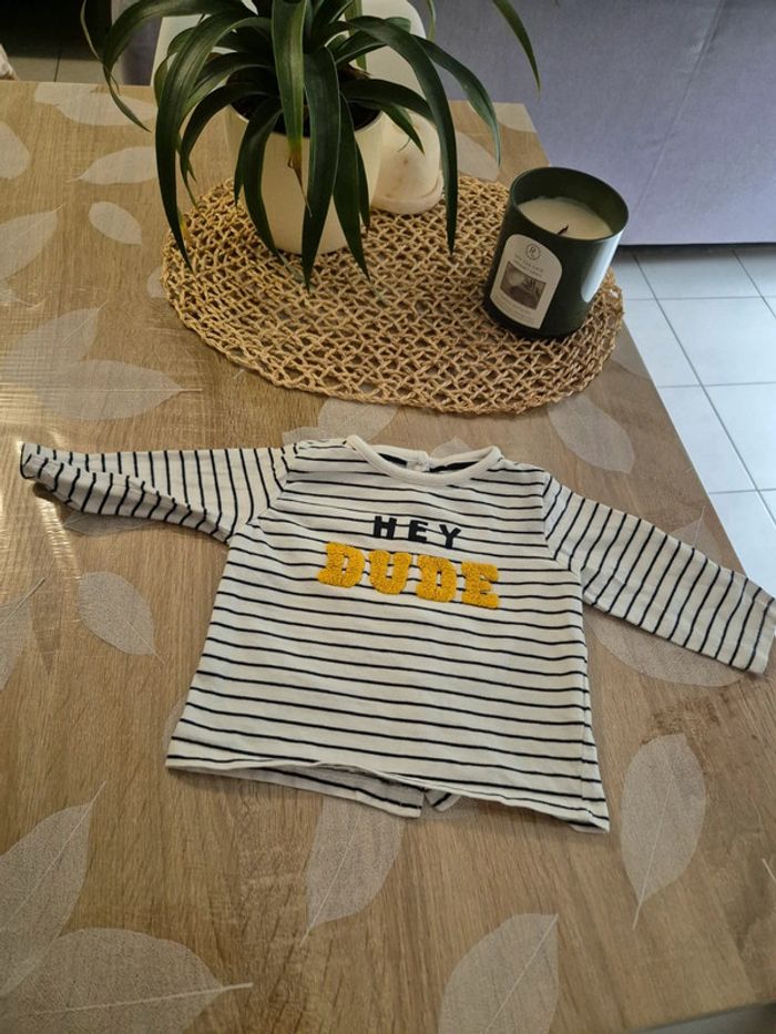 Tee-shirt manche longue taille 6 mois . Parfaite état. Voir jamais porter.