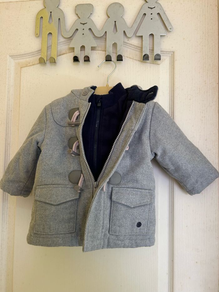 Vends manteau gris avec capuche et gilet polaire intégrer en très bon état. Taille 12mois