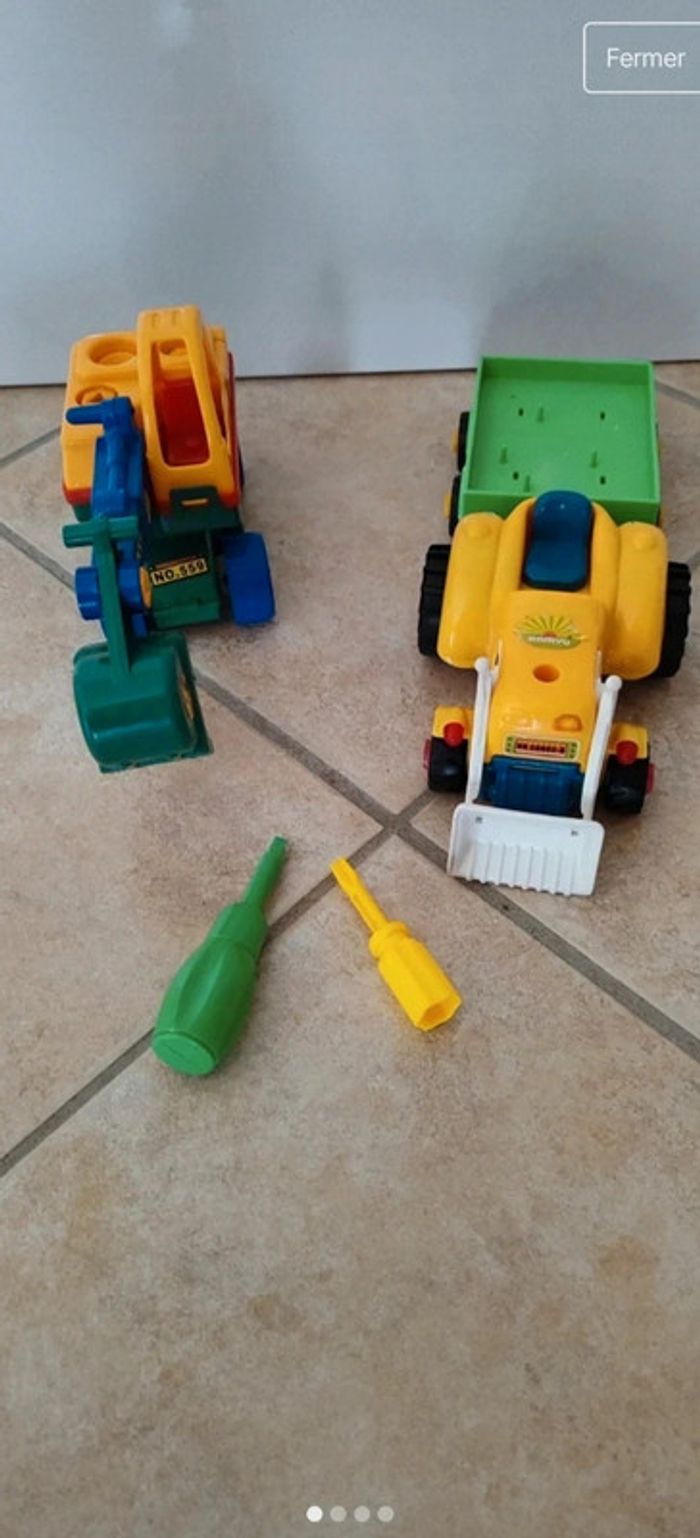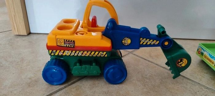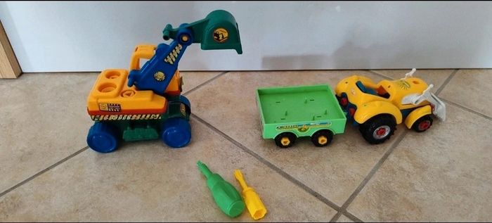 Tractopelle et tracteur remorque avec leurs outils pour démonter. Prix pour le lot. D'autres véhicules pour enfant à vendre sur mon dressing
