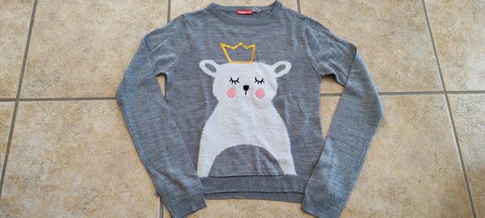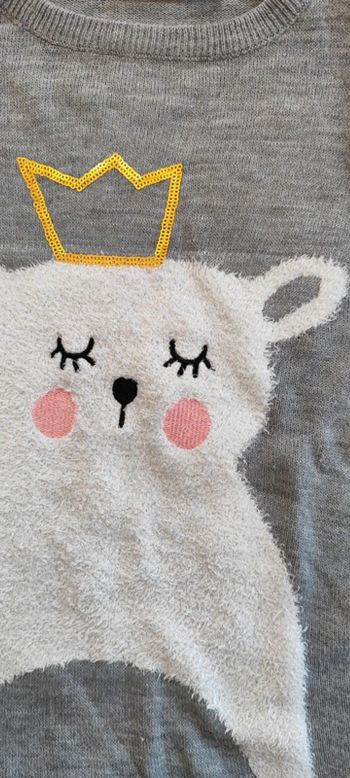 Dessin ourson tout doux. Couronne en sequins. Porté 1 fois. Sans trou, ni tâche. D'autres vêtements en 8.10.11.12 ans fille sur mon dressing, n'hésitez pas à regrouper les achats pour réduire les frais.