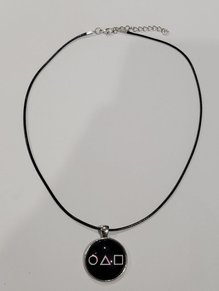 COLLIER CORDELETTE CABOCHON SQUID GAME ! NEUF ! Longueur de la cordelette: 45 cms. ( + 5 cms de chainette ajustable) Diametre du pendentif : 2,8 cms . N'hésitez pas à regarder mes autres ventes. Envoi rapide et soigné.