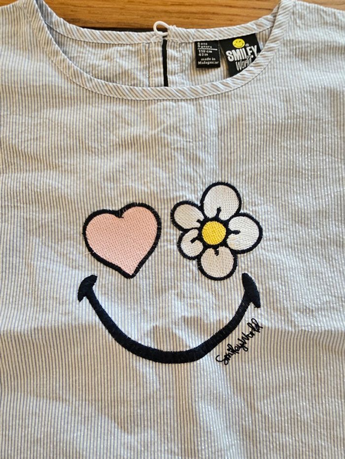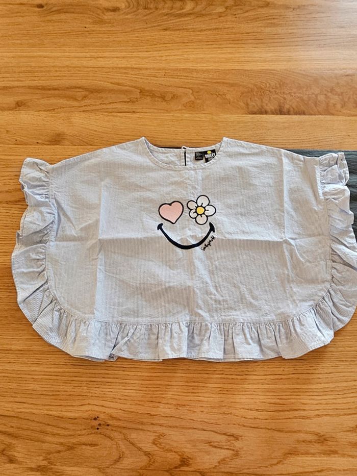 Haut t-shirt / cape 5 ans bleu ciel et argent brillant rayé Smiley, comme neuf #jucan5ans