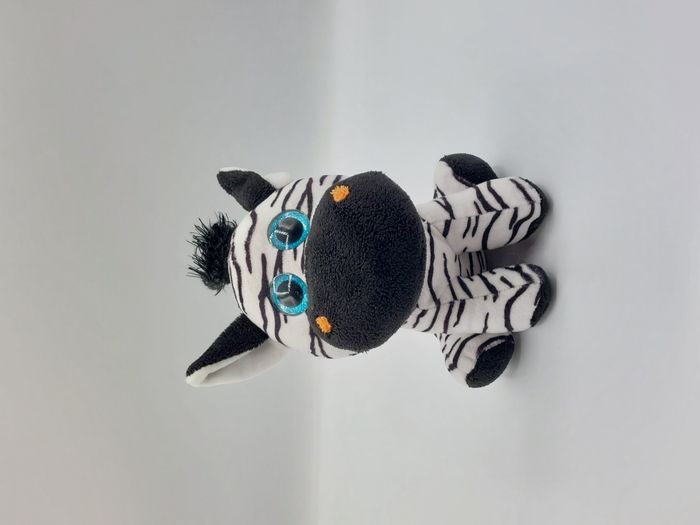 Peluche doudou zèbre blanc noir gros yeux bleus 18 cm - photo numéro 1