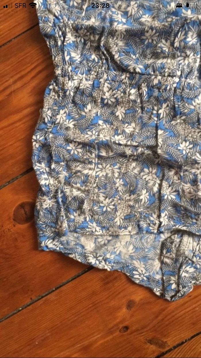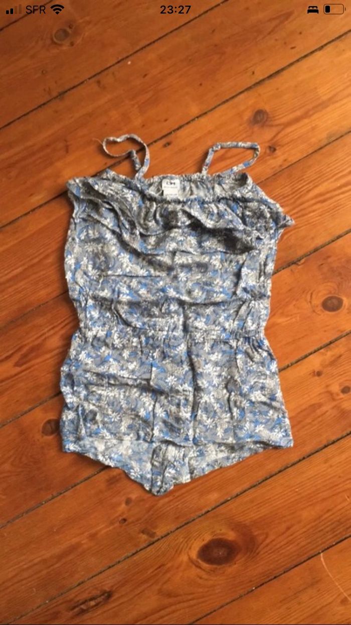 Combi short bleue à fleurs blanches marque La Halle. Taille 5 ans. Très bon état.