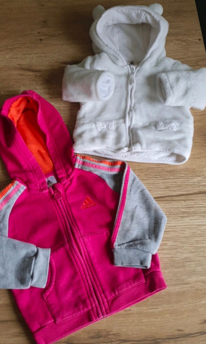 Lot de 2 vestes gilets zippés Taille 6 mois 1 Adidas rose et gris 1 orchestra toute douce avec des oreilles d'ours magnifique Très bon état