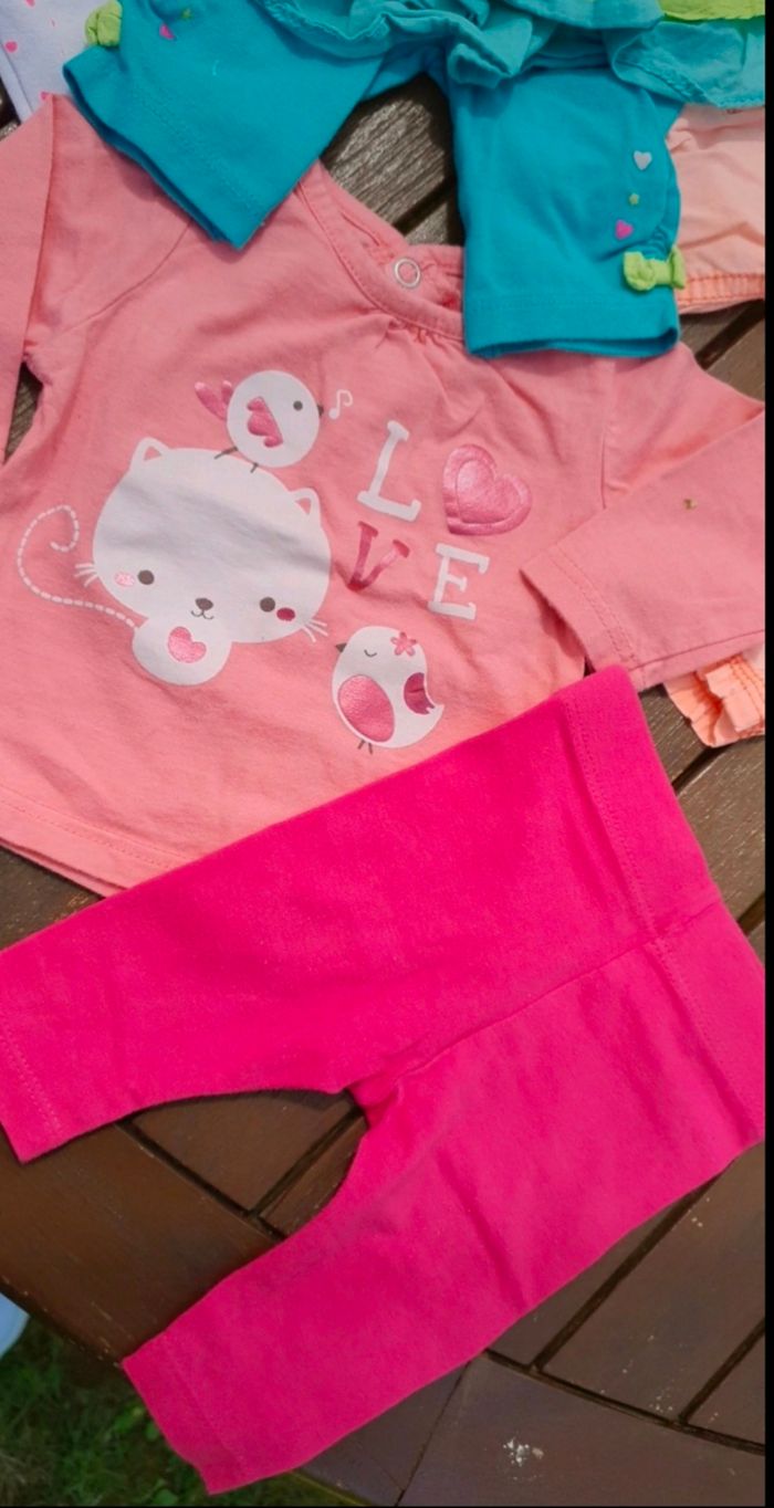 Lot de vêtements été 1 mois Très bon état Lot comprenant 2 jeans legers 2 pantacourt (legging) 1 legging 3 haut manches longues 2 hauts manches courtes 1 boomer