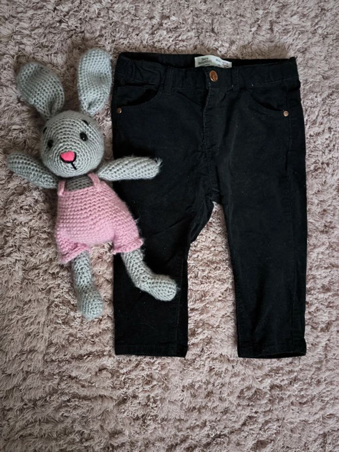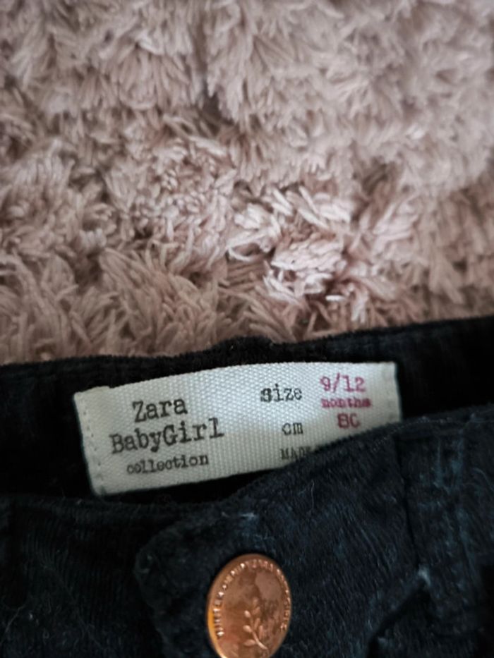 Pantalon Zara, velours côtelé. Taille 9/12 mois 80cm Très peu porté Élastiques à la ceinture pour ajuster le pantalon. Couleur noir (les peluches blanches seront enlevées avant expédition)