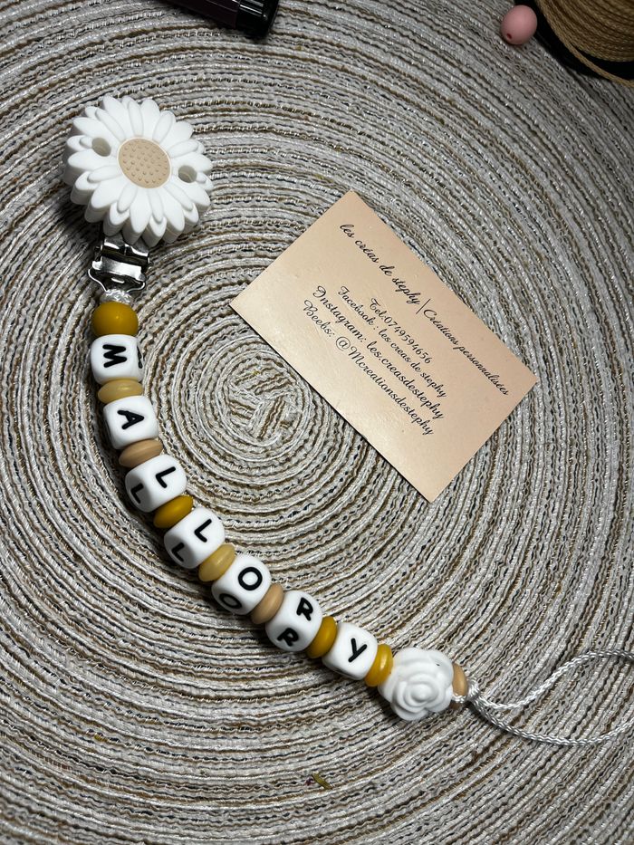 Pour passer commande il suffit de valider le paiement sur l’annonce du modèle désiré et de m’envoyez le prénom de l’enfant par message que je puisse réaliser votre commande A partir de 2 articles vous bénéficiez de 5% de réduction 🥰 Réalisation dans la journée et envoie dès le lendemain Attention l’adaptateur tétine mam et en supplément à 1€ Une petite photo du modèle terminé et toujours envoyez que vous puissiez vérifier ☺️