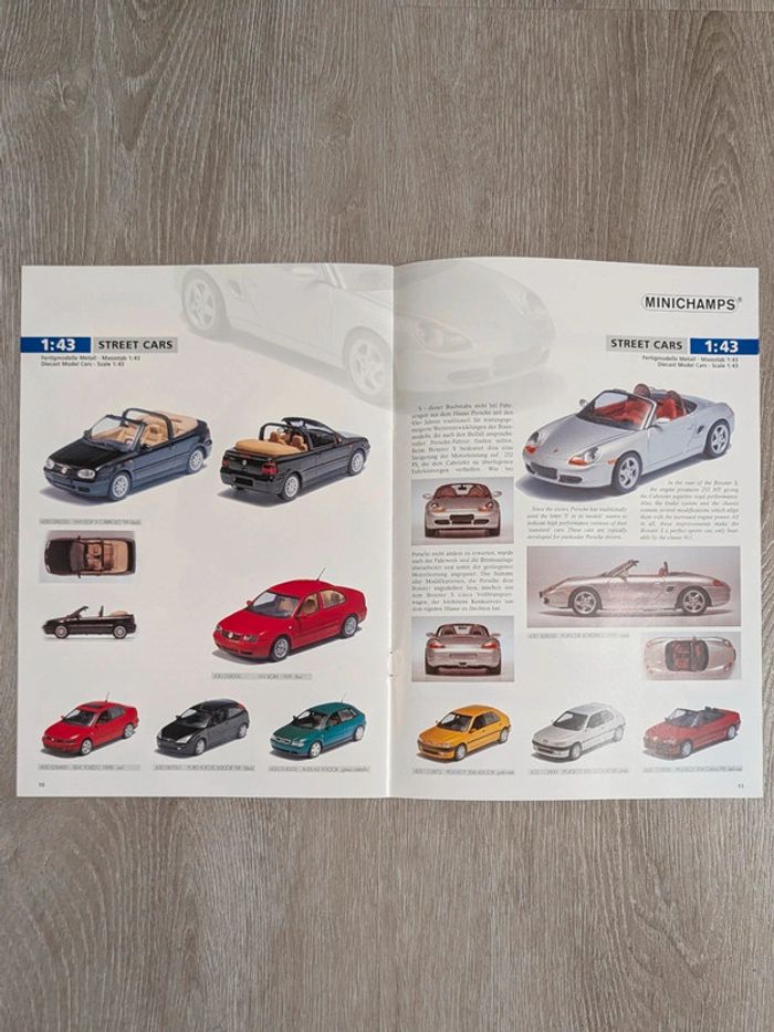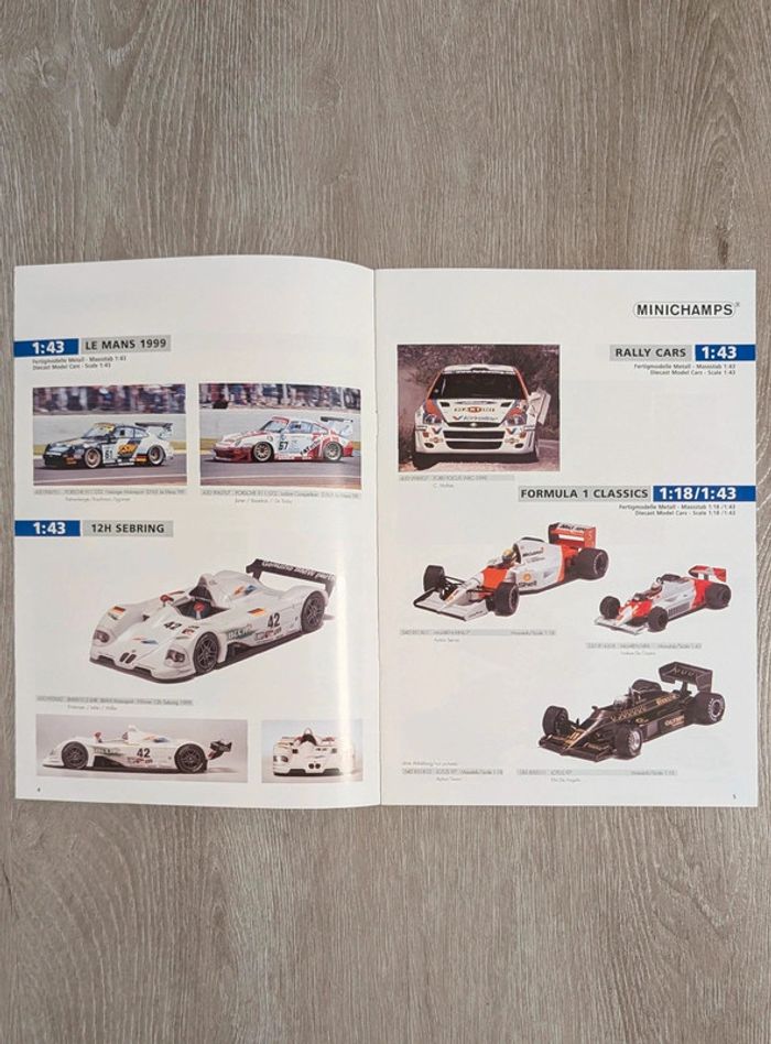 #_Miniature_ Catalogue miniatures Minichamps édition 3 (1999) 1/43 et 1/18 24 Heures du Mans, 12 Heures Sebring, rallye, Formule 1, voitures, Porsche 904 GTS, Champ Car 16 pages, langue allemande