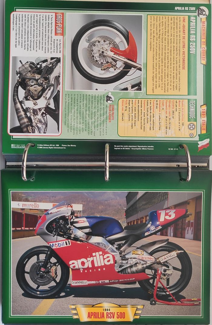 🏍️ Machines de course de 1905 à 2003 (102 fiches) : Aprilia, BMW, Ducati, Harley-Davidson, Honda, Kawasaki, Moto Guzzi, MV Agusta, Norton, NSU, Peugeot, Suzuki, Yamaha...