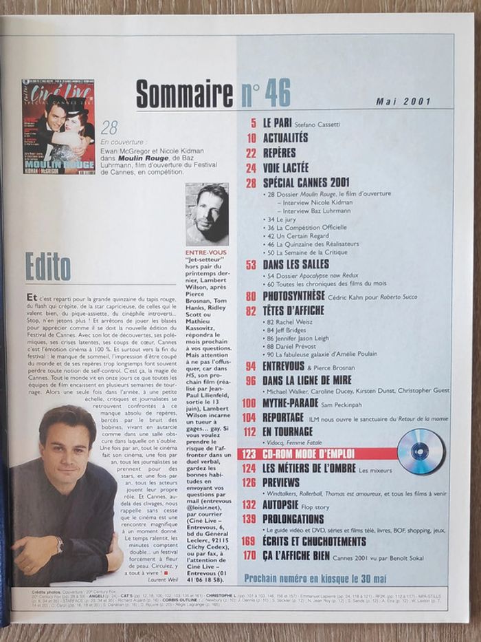 Ciné Live numéro 46 (mai 2001) DVD reportages et bandes annonces inclus Dossiers spécial Cannes 2001, Moulin Rouge, Apocalypse Now 170 pages de cinéma D'autres numéros disponibles sur demande