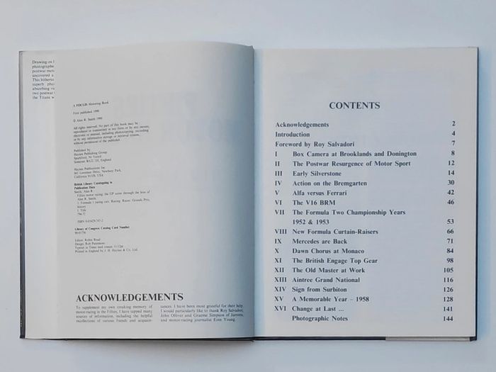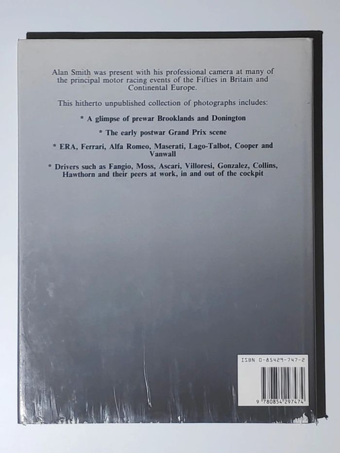 #_Livre_#_sport_#_auto_ Fifties Motor Racing The GP Scene Through the Lens of Alan R. Smith Livre en langue anglaise, édité en 1990 144 pages, photos noir et blanc Jaquette un peu abîmée sur l'arrière du livre