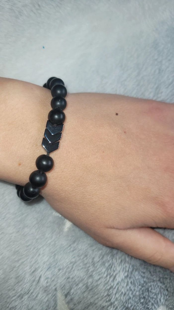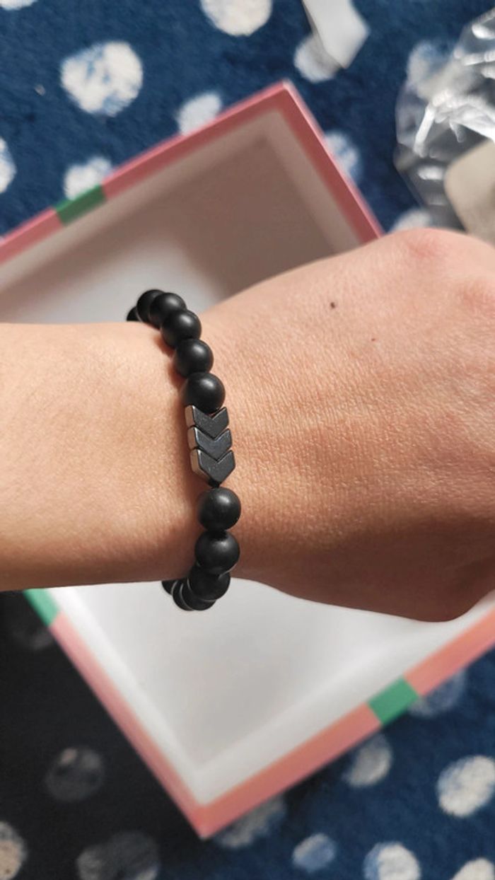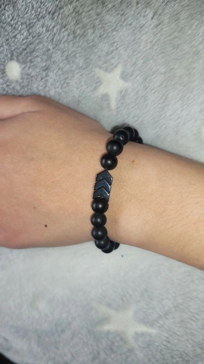 Bracelet neuf porté 1 fois. Perles noire 3 petites flèches couleur chromé. Taille réglable. Bracelet mixte. Réduction sur les lots !! Jetez un oeil à mon dressing les soldes continuent !! 🥰🥰