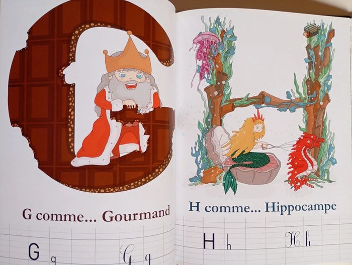 LIVRE LUDO-EDUCATIF : Dans cet Abécédaire, votre enfant aura envie de s’appliquer sur ses lignes d’écritures, grâce aux personnages et situations qui vont l’aider à développer son vocabulaire. DONNE LE GOUT DE L' ECRITURE : Les illustrations, issues de nos contes fantastiques personnalisés, mêlent les lettres et les images pour ne faire qu’un. Votre enfant adorera retrouver, plus tard, ses premières pages d'écritures. Un livre à garder pour la vie ! AIDE A LA CONCENTRATION: Pensé pour faciliter la concentration, cet Abécédaire sur lequel votre enfant peut écrire, développe aussi son sens de la calligraphie, et donc l'aide à se concentrer dans son apprentissage de l'écriture. Editeur : Les Enfants Roy Dimensions : 22 x 29 cm Livre en parfait état #abécédaire #alphabet #écriture