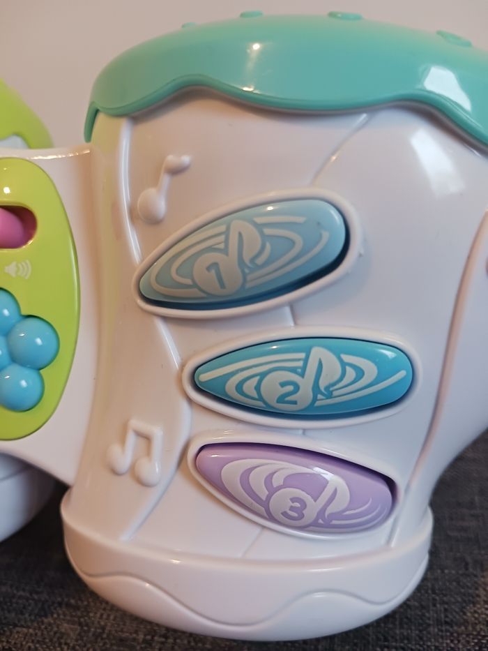 TamTam avec 2 modes tambour ou sons et musiques. Niveau sonore réglable. En très bon etat malgré de petites éraflures Et piano