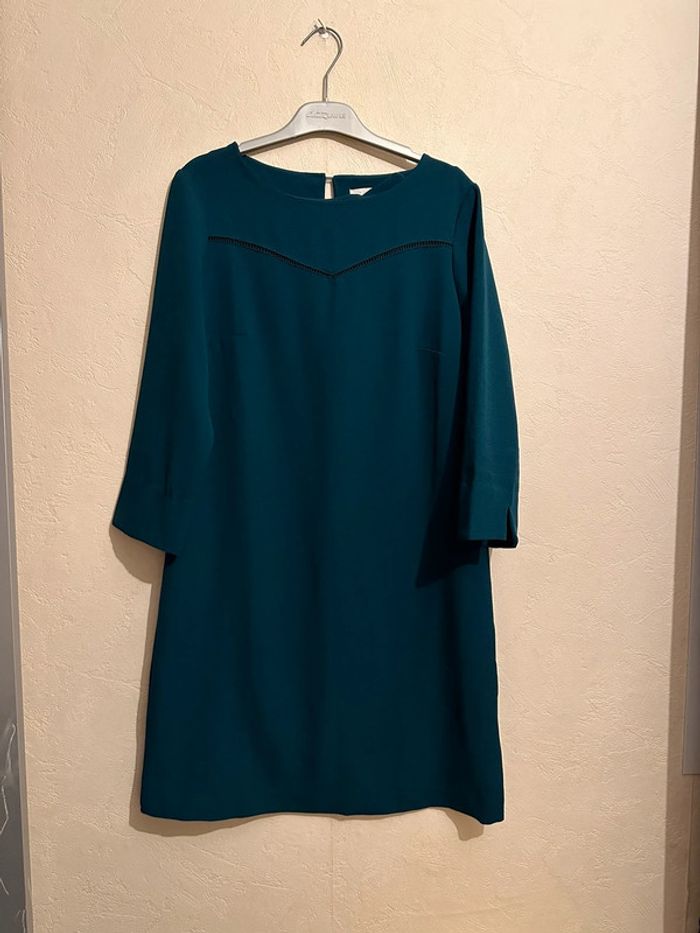 Robe verte foncé  manches 3/4 pour femme taille 38 Camaïeu - photo numéro 1