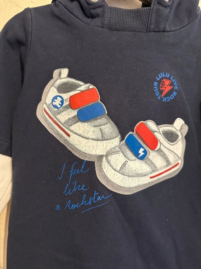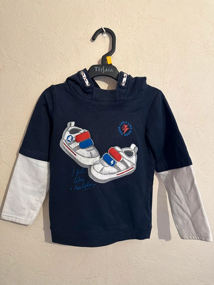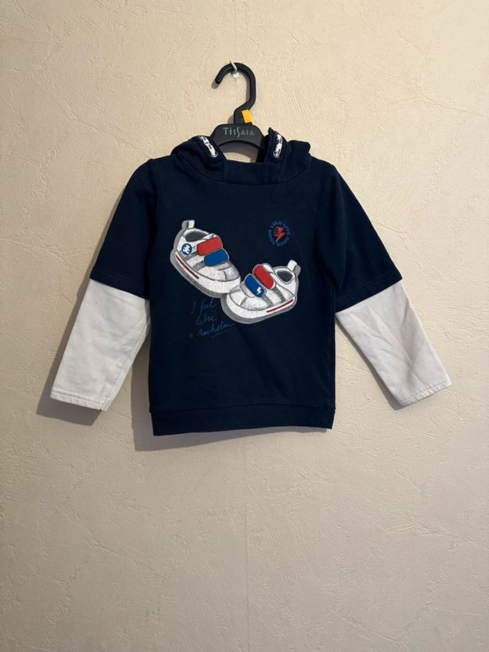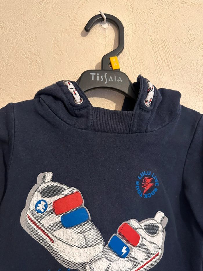 Pull  à capuche marine molletonné imprimée garçon 3 ans