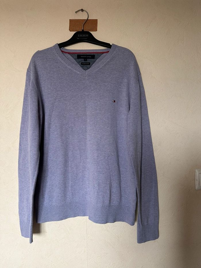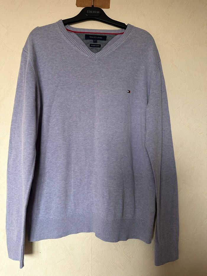 Pull en coton à col en V uni avec logo homme taille L Tommy Hilfiger - photo numéro 1