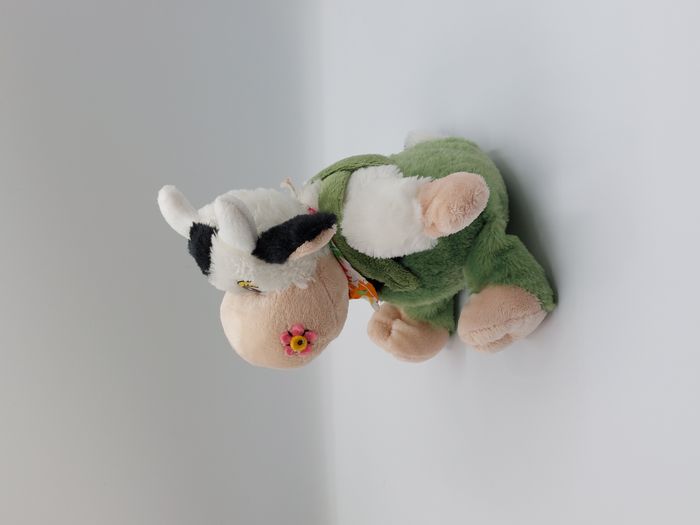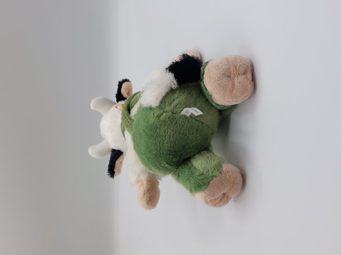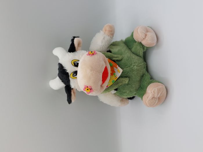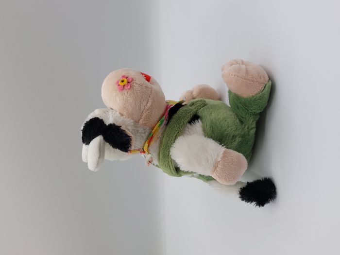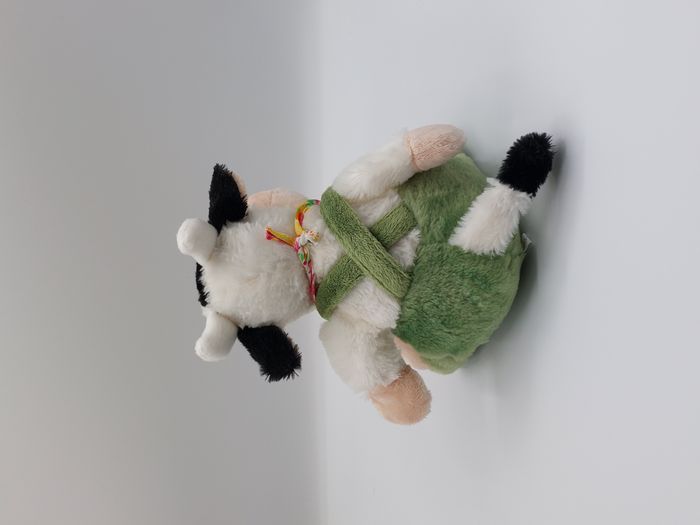 Peluche doudou vache blanc beige D.I.I salopette verte bandana orange fleurs 24 cm Très bon état, lavé avant la vente Envoi soigné et rapide Réf A11605 #minotresor #peluche #doudou #plush #knuffel #comforter