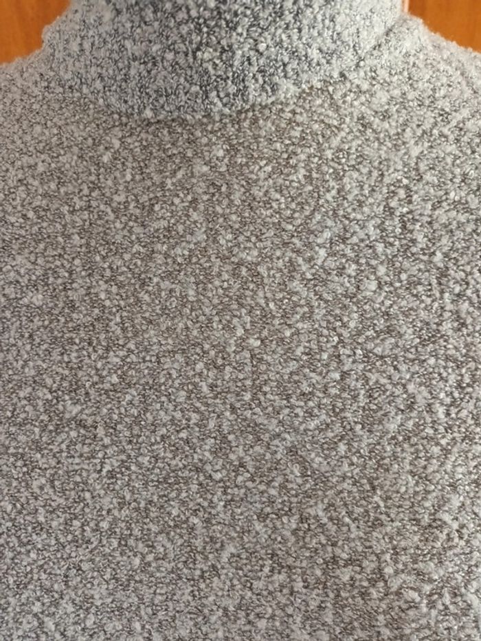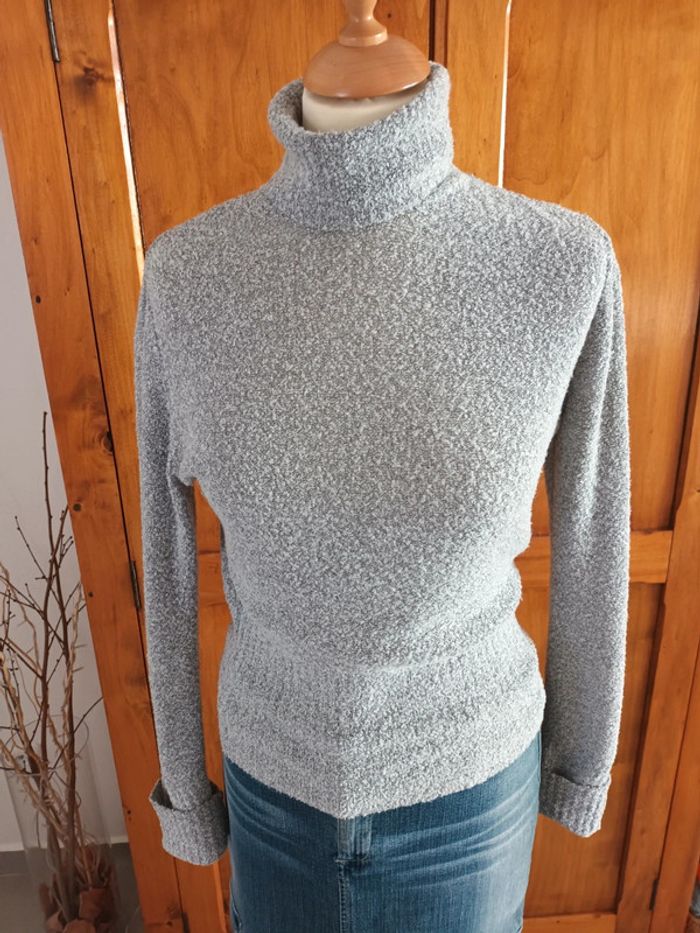 Ancien pull gris, plus d'étiquettes, je pense que la matière est de l'acrylique, correspond à un 38, voici les dimensions : Largeur épaules 39 cm env, Largeur sous aisselles 47 cm env, Longueur 52 cm env. Ce pull a été porté. #pullgrismaillebouclettesfemme38 #pullcolroulefemme38 #pullgriscolmontantfemme38