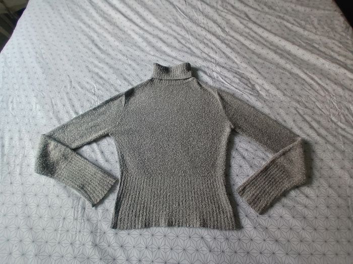 Pull col roulé gris maille bouclettes - photo numéro 1
