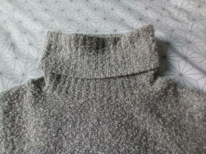 Pull col roulé gris maille bouclettes - photo numéro 6