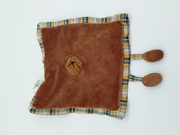 Doudou plat ours marron AUBERT Concept carreaux beige blanc bleu vert Très bon état, lavé avant la vente – minuscule réparation faite sur le côté (photo 4) Envoi soigné et rapide Réf A11634 #minotresor #peluche #doudou #plush #knuffel #comforter