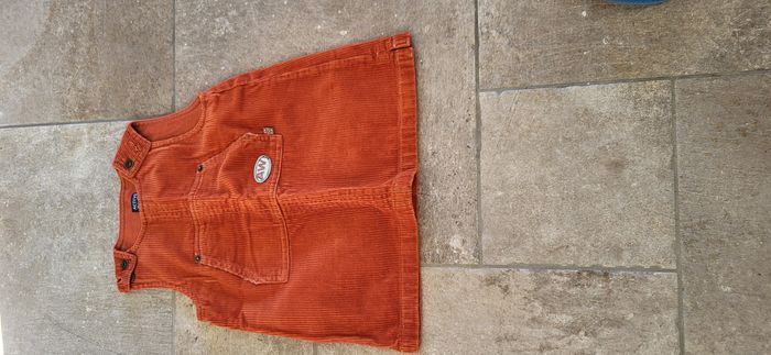 Vends lot de 4 vêtements fille taille 18 mois : - Robe chausuble en velours couleur rouille - Marque ACTIV WEAR - - Barboteuse hiver beige col claudine bleu "little girl" - Marque POUPINET - Tee-shirt bleu marine manches longues - Marque OKAOU - Ensemble ski : pantalon épais et imperméable + pull polaire bleu - Marque KIMBALOO Le tout en taille 18 mois et en très bon état Chaque article peut être vendu individuellement