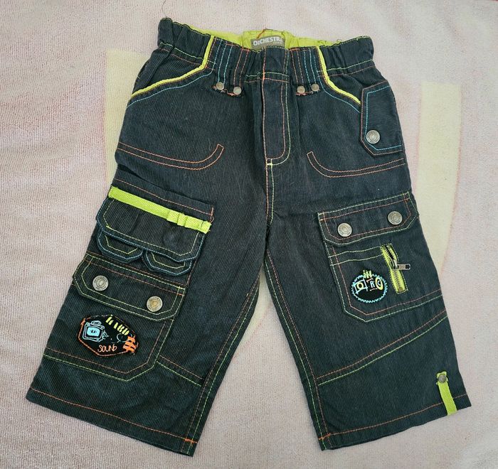 joli pantacourt 📌Marque :orchestra 📌Taille :3 ans 📌Motif : graphisme et logos/ rayures 📌Coloris :gris foncé Pour voir tout mon 3 ans tapez dans la barre de recherche #3ansgarçonlili29217