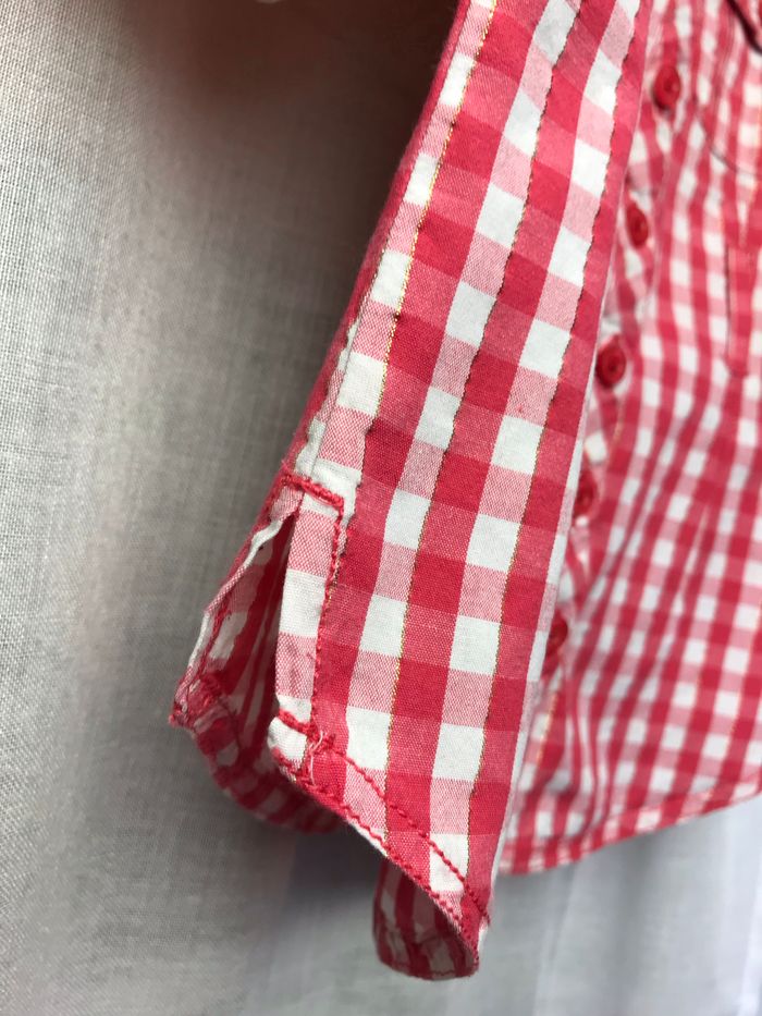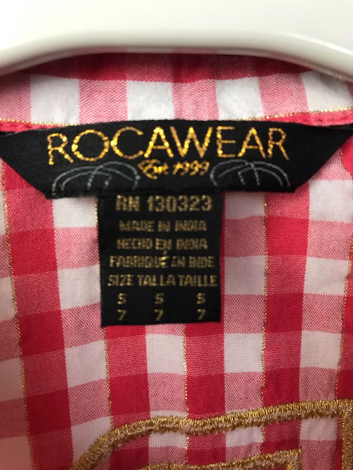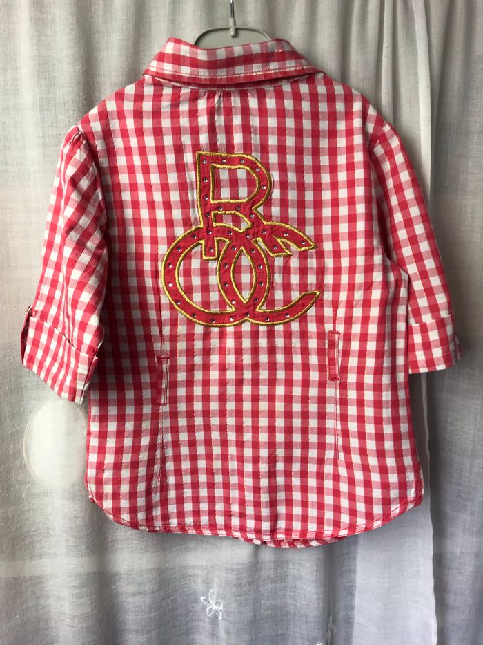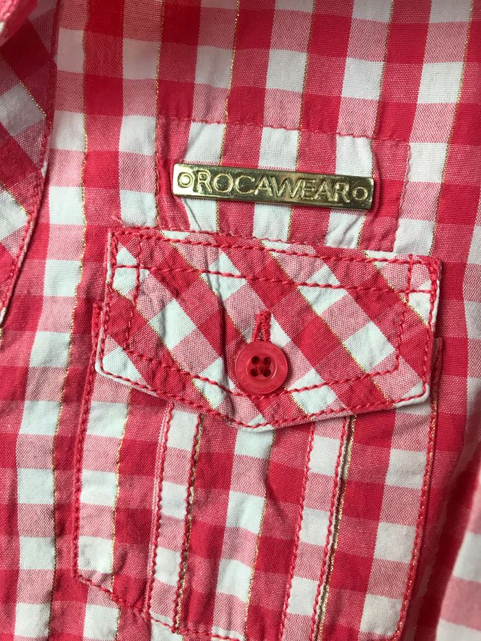 Superbe chemise à carreaux rose corail et blanc avec fil or Jolie couronne dans le dos avec strass Manches 3/4 avec revers Fendu sur chaque côté Taille 7 ans Marque américaine Rocawear