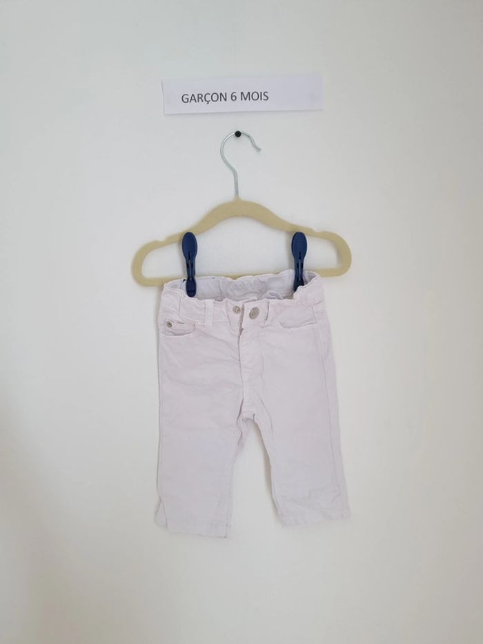 Pantalon blanc peu porté très bon état se ferme avec un bouton pression et une fermeture éclair a une ceinture avec élastique réglable marque jacadi paris taille 6 mois