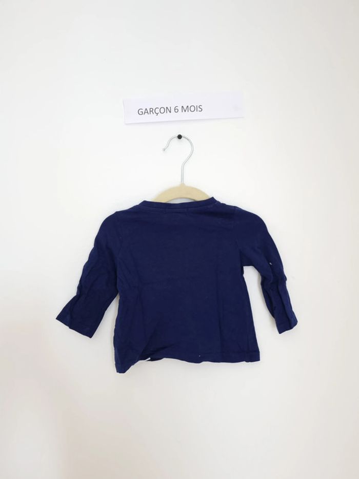T-shirt manches longues bleu nuit avec flocage d'un tigre qui joue du basket ouverture au col par boutons pression sur le côté Marque Du pareil au même 6 mois Peu porté en très bon état